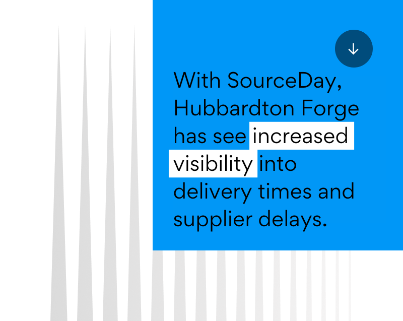 or planners and schedulers, increased inventory turns by addressing safety stock, and increased visibility into delivery times and supplier delays. The implementation process was smooth, and SourceDay worked with Hubbardton to send personalized introduction letters to their 20 top-tiered suppliers. Then the company developed their own custom onboarding process with the help of SourceDay’s LiveSupport team, who was always available when needed. For the weeks following implementation, SourceDay’s Customer Success team conducted weekly meetings to answer questions and make sure the buyers and suppliers were getting the most out of the solution.